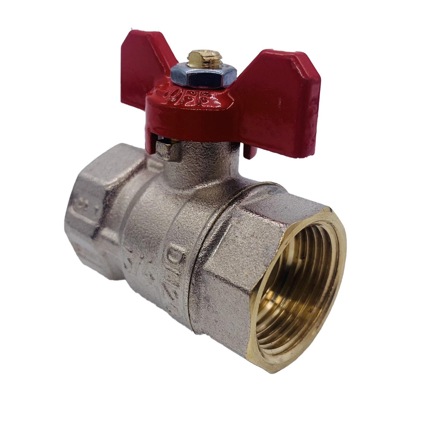 Кран шаровый Tiemme Mistral 3/4" ВВ (красная бабочка) (2360003) / Краны MISTRAL, резьба внутренняя/внутренняя ISO228, с ручкой-бабочкой (Art. 2370)