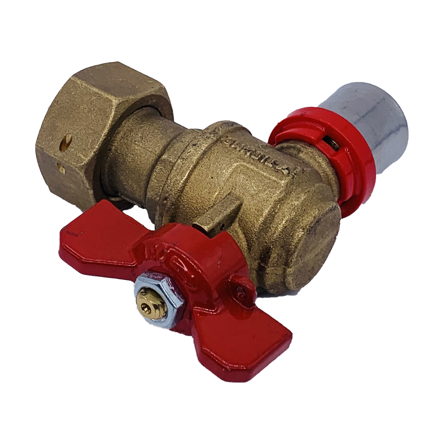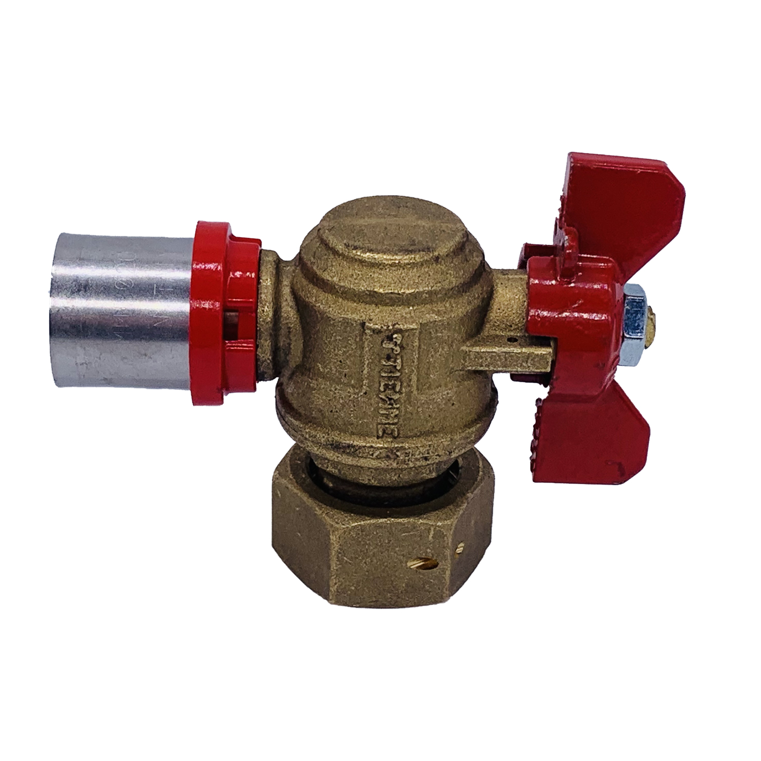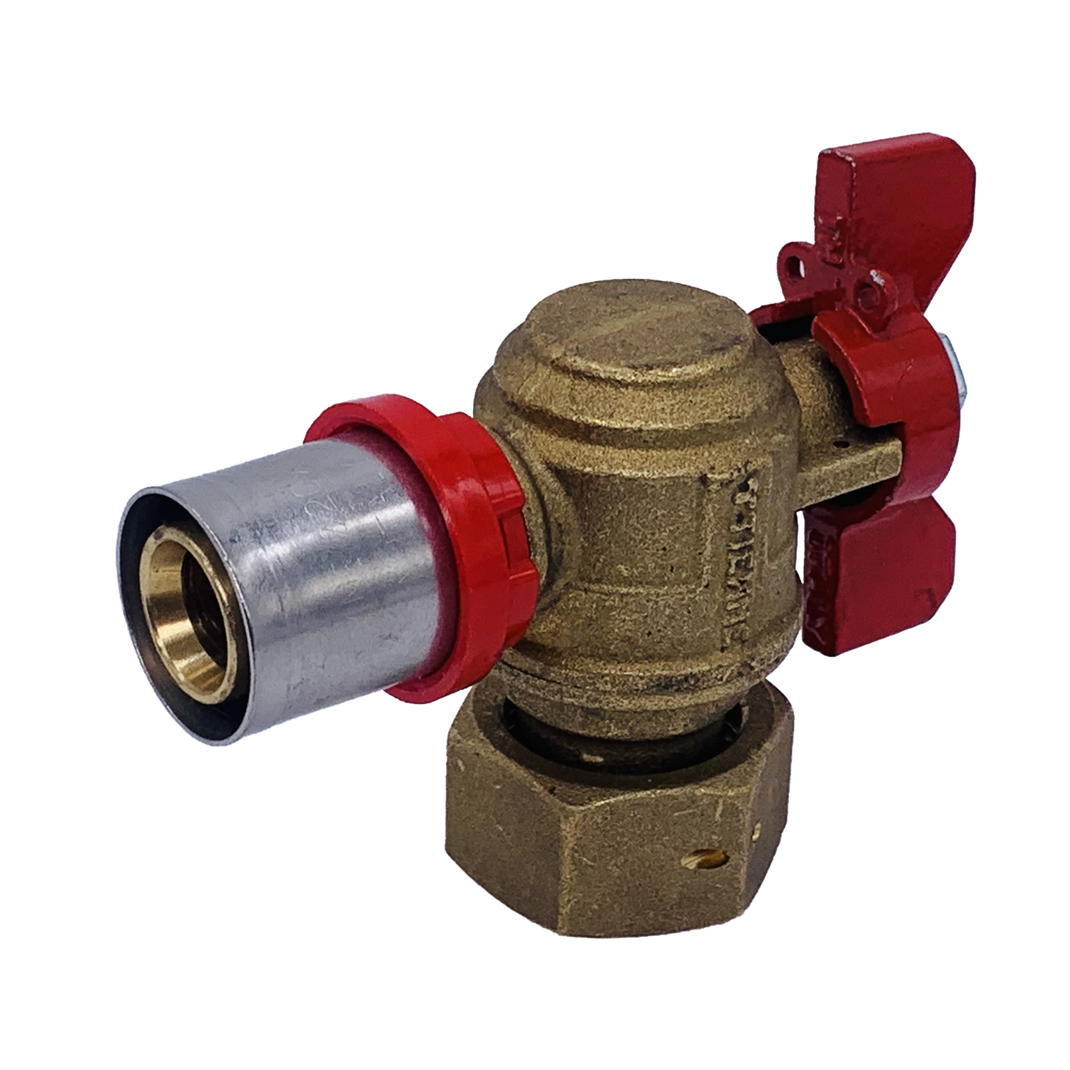 Кран шаровый угловой с накидной гайкой Tiemme 20*3/4"В пресс (латунь) (1680019) / Шаровой кран с ручкой-бабочкой, с концами под запрессовку для многослойной трубы и свободной гайкой (Art. 1692)