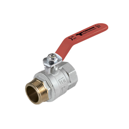 Кран Tiemme 1" BН шаровый Scirocco красная плоская ручка (2310028)