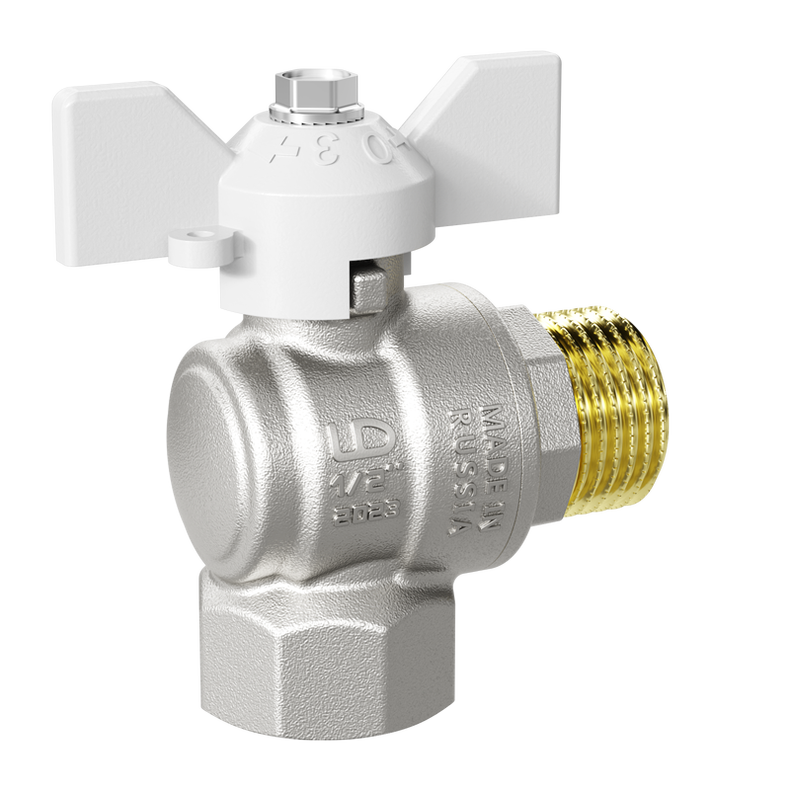Кран угловой 1/2" ВН шаровый LD Pride белая бабочка (LD 47.202.15 W)