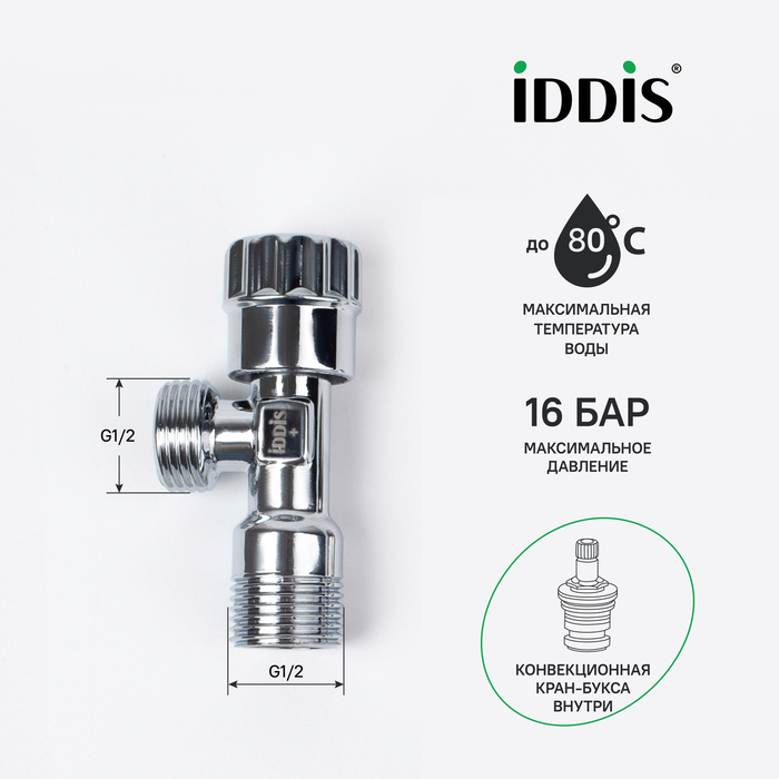 Кран угловой с отражателем 1/2"x1/2" кран-букса латунь Iddis (910B0P2C2CZ)