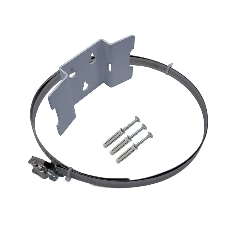 Состав комплекта: кронштейн 1 шт, хомут с замком 1шт, шурупы 3 шт, дюбеля 6 мм 3шт.