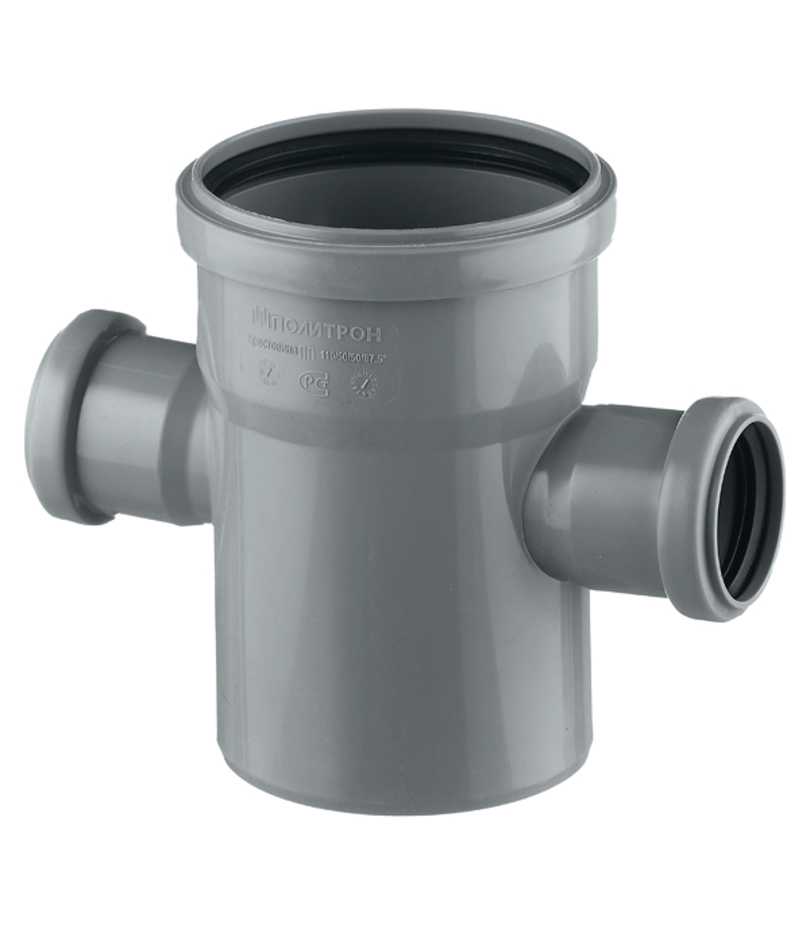 Используется с трубами канализационными внутренними диаметром 110 мм и имеет 2 отвода для труб диаметром 50 мм.