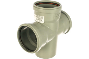 Устанавливается в местах, в которых необходимо подключить две горизонтальные трубы канализации к стояку диаметром 110 мм в одной точке с противоположных сторон. Изделия с углом 87,5 градусов могут быть востребованы в стесненных условиях монтажа.