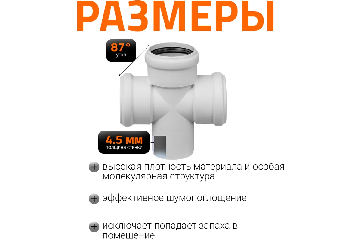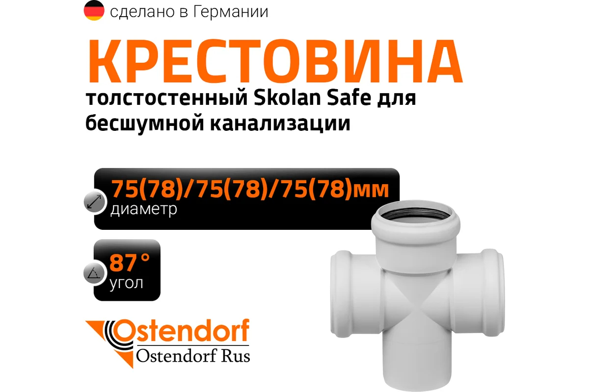 Крестовина бесшумной канализации Ostendorf Skolan Safe - предназначен для подключения 2-х дополнительных линий канализационного трубопровода, расположенных в одной плоскости.