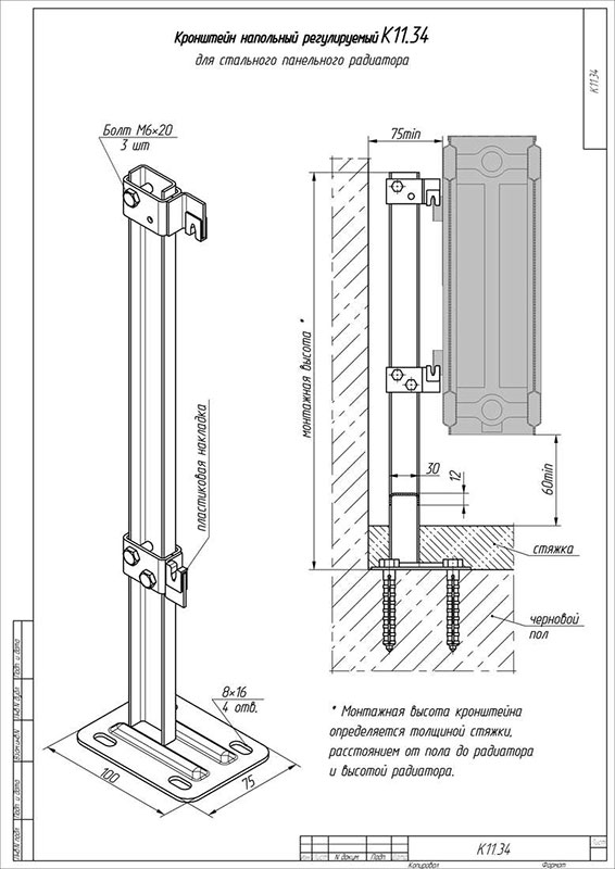 Кронштейн напольный предназначен для крепления стальных панельных радиаторов на пол.