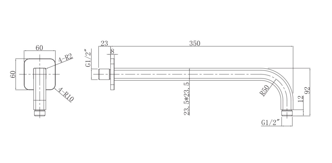 Кронштейн душевой Omnires настенный 350 мм Omnires хром/белый (RA15CRB)
