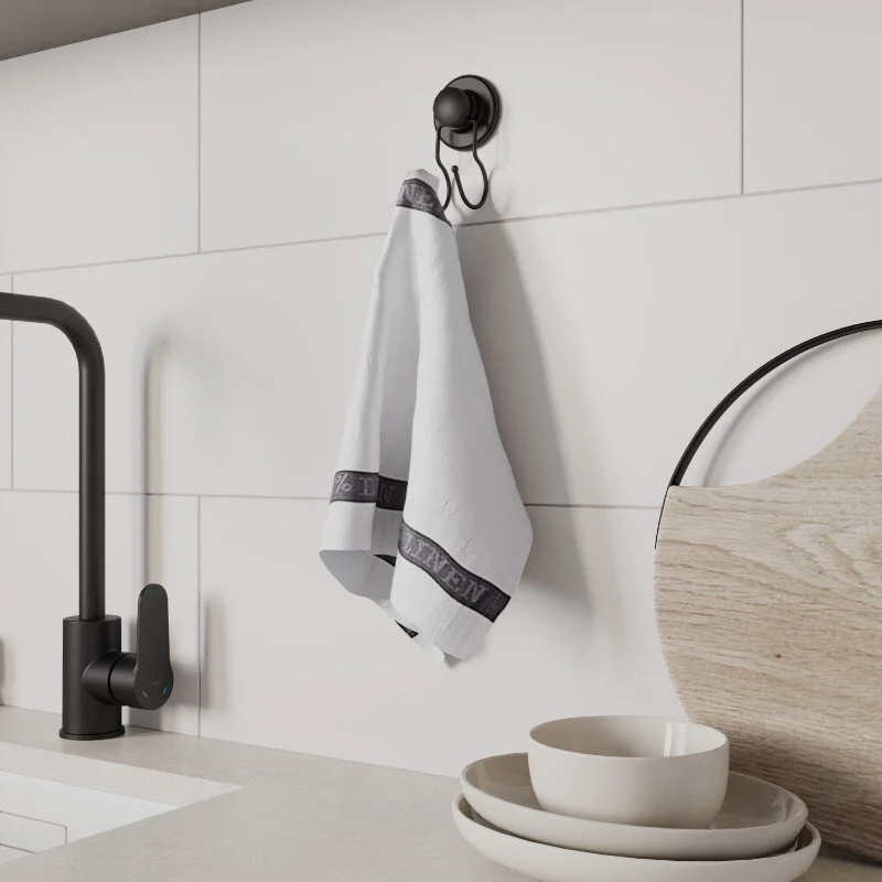 Стилистически крючок из коллекции Easy подходит для многих интерьерных решений, функционально – для поддержания порядка в ванной или кухне. Он легко устанавливается в подходящее место независимо от типа помещения: таким образом, текстиль будет размещен там, где он нужнее всего. Эта модель монтируется специальным фиксатором на клеевой слой, дополнительно усиленный вакуумом, что увеличивает степень соприкосновения клеевой основы с поверхностью стены. В отличие от изделий из пластика, крючок Milardo® может выдерживать высокую (до 5 кг) нагрузку. Он монтируется без сверления, а значит можно не опасаться повредить красивую плитку или другое настенное покрытие. Высокопрочная порошковая покраска «черный муар» обеспечивает стойкую защиту от коррозии и создает привлекательный внешний вид.