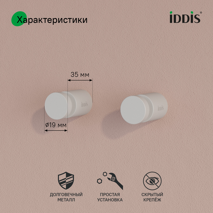 Крючок одинарный комплект сплав металлов Petite белый матовый Iddis (PET2SW1i41)