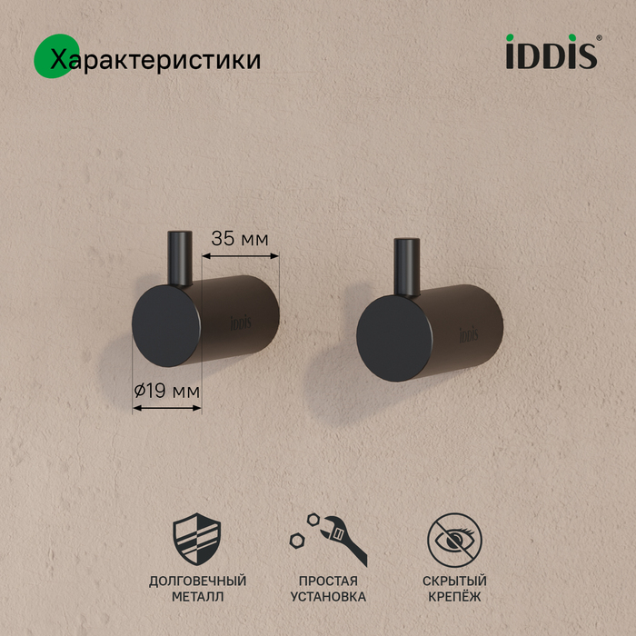 Крючок одинарный комплект сплав металлов Petite черный матовый Iddis (PET2SB3i41)