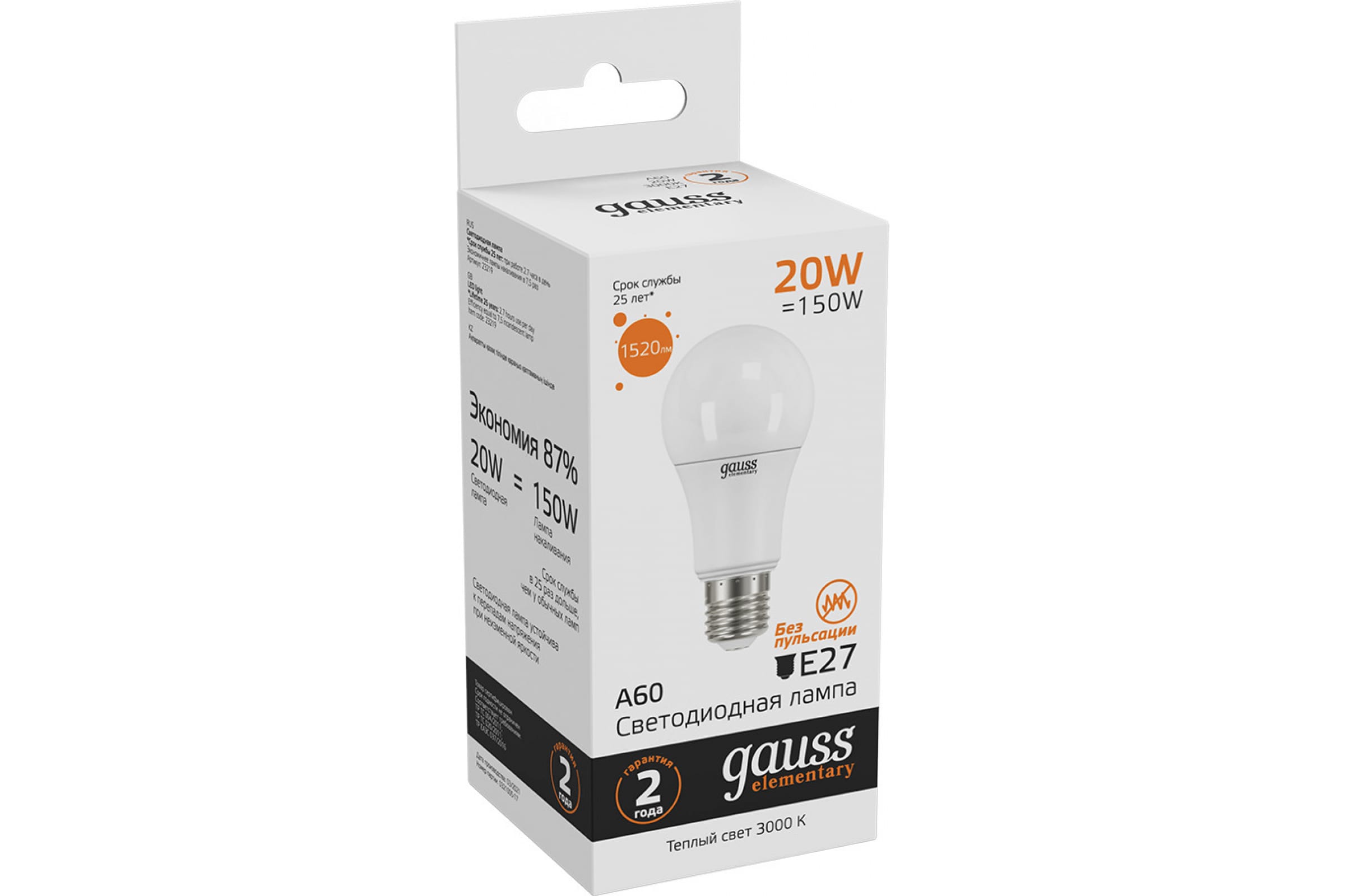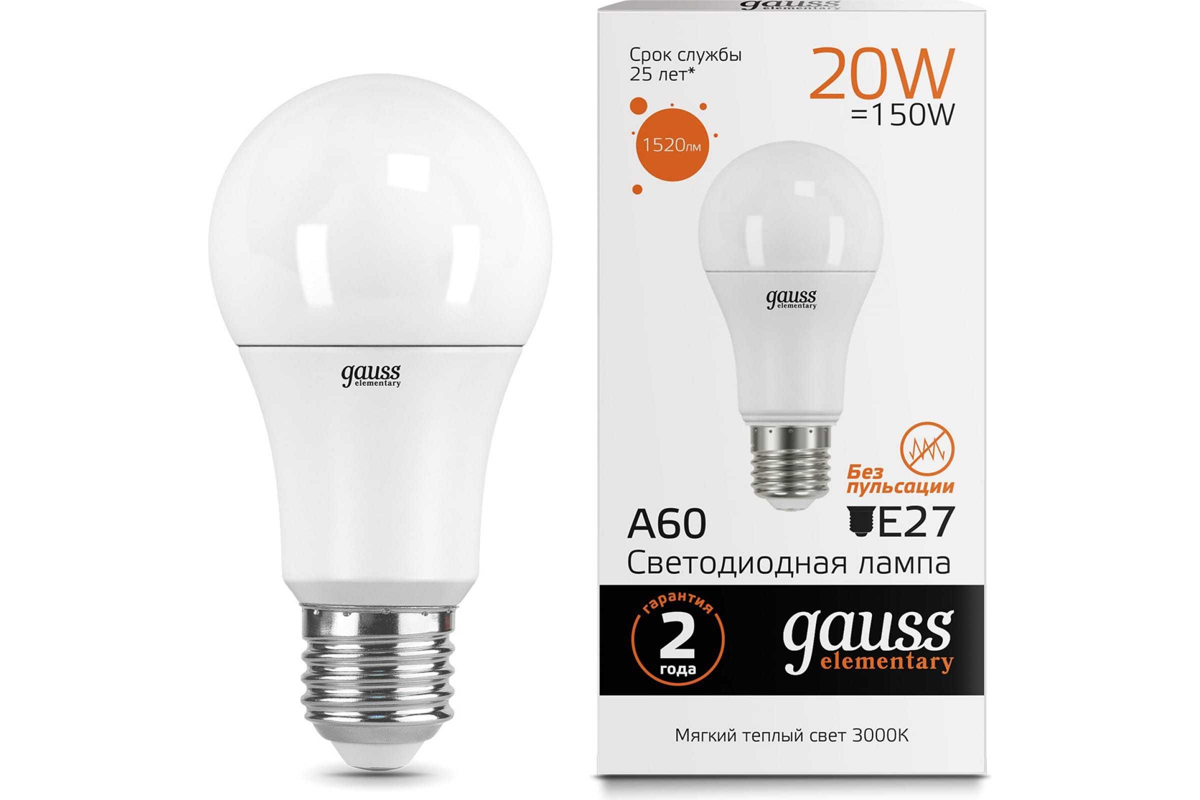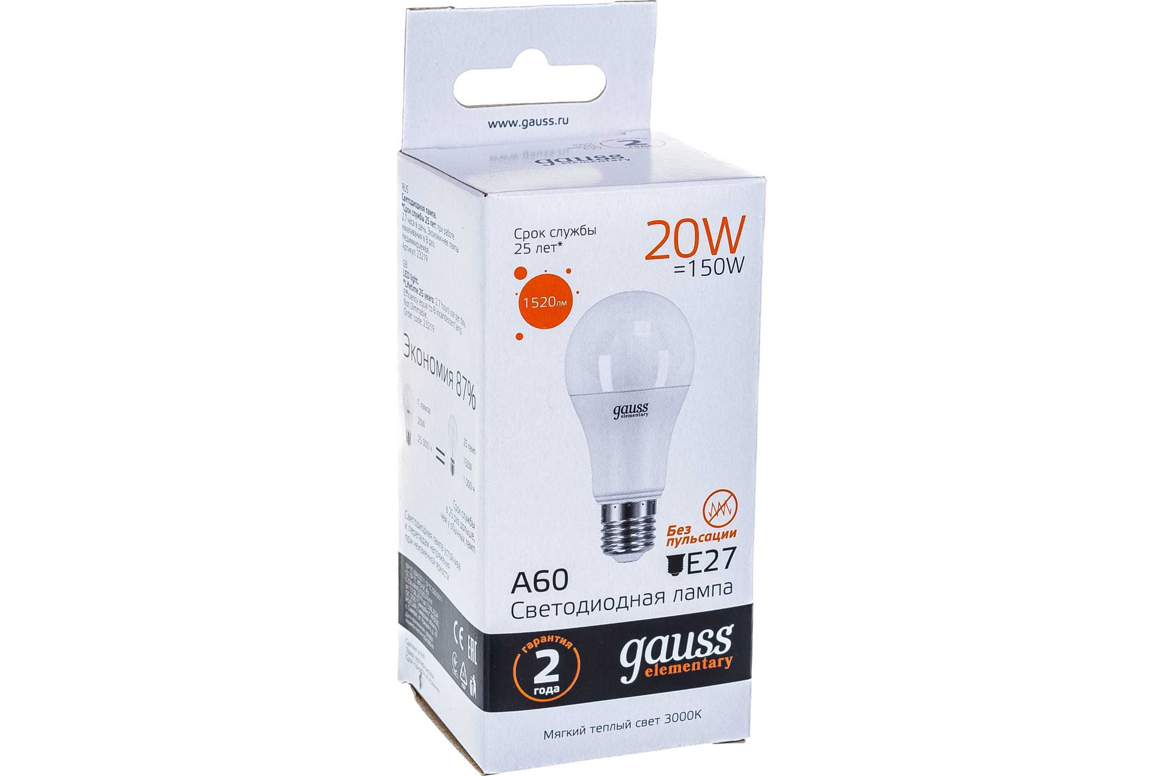 Лампа светодиодная Gauss Е27 20 Вт 1520 Лм теплая Elementary (3000К) (23219)