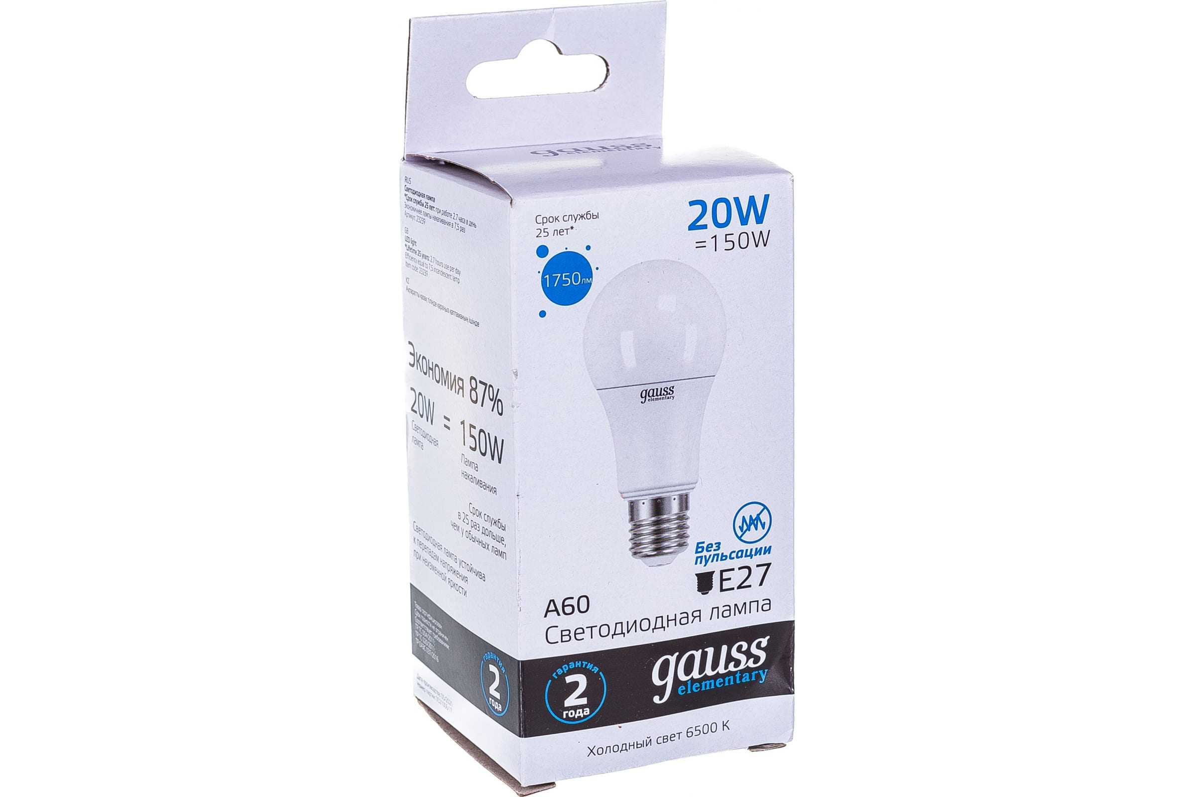 Лампа светодиодная Gauss Е27 20 Вт 1750 Лм холодная Elementary (6500К) (23239)