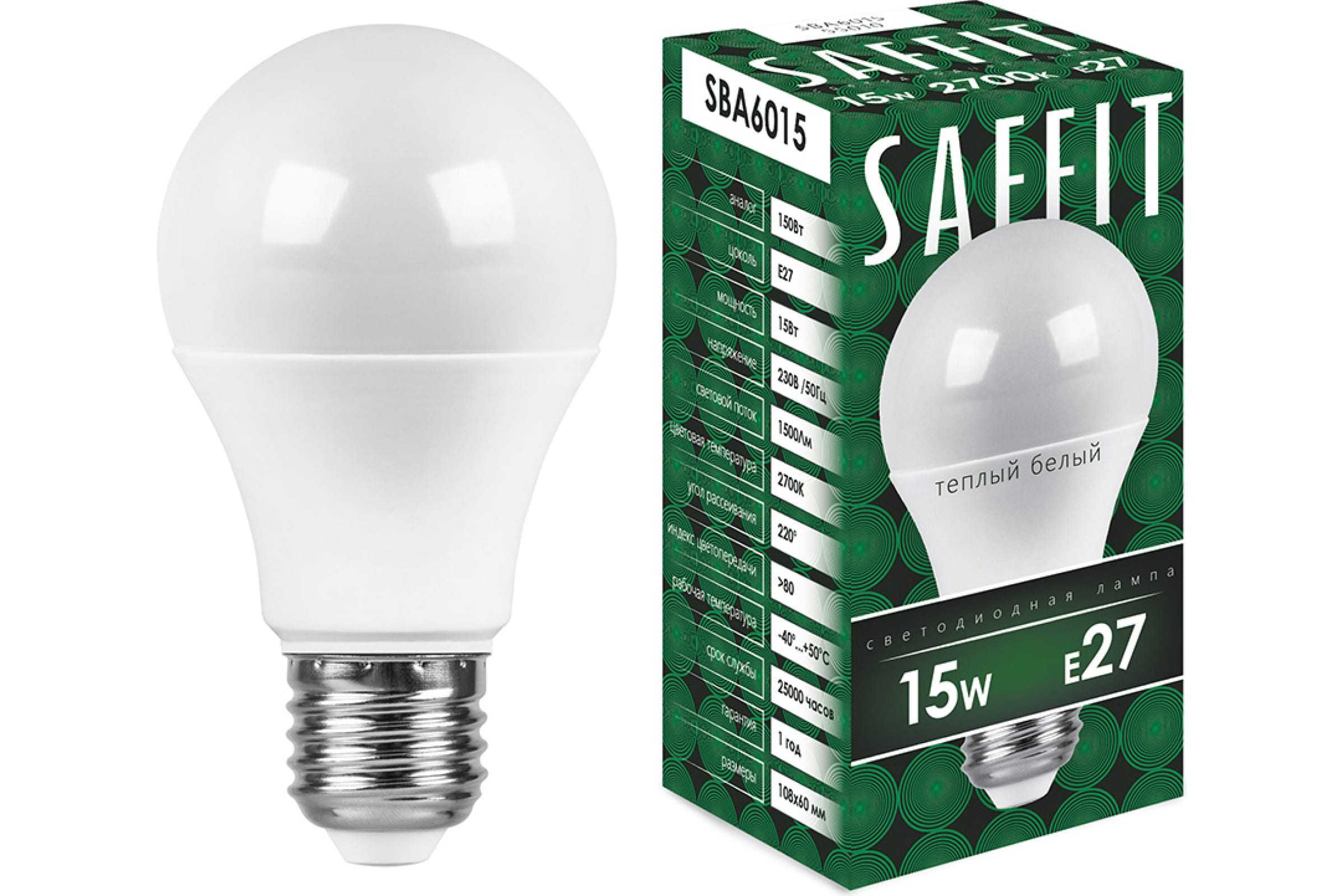 Лампа светодиодная SafFit LED 15вт Е27 белый (SBA6015)