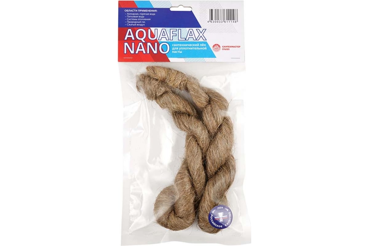 Сантехнический лён российский Aquaflax nano пакет, 100 грамм 04114 предназначен для герметизации резьбовых соединений различных систем. Применяется только совместно с уплотнительной пастой (рекомендуем использовать пасту того же бренда).