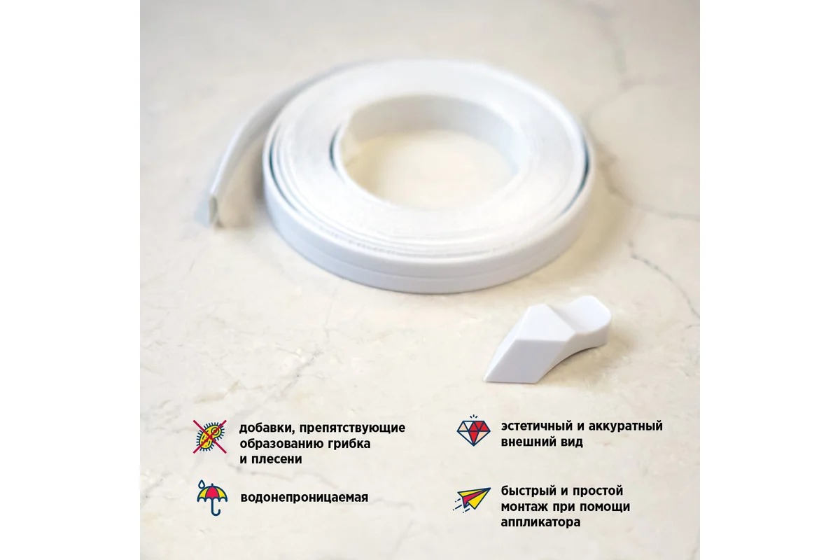 Бордюрная клейкая лента для ванн и раковин AVIORA 12,8 мм, 3,35 м 302-095 позволяет заполнять швы в ванной комнате или на кухне. Изделие легко наносится и оснащено аппликатором для плотного приклеивания. Лента препятствует появлению грибка и плесени.