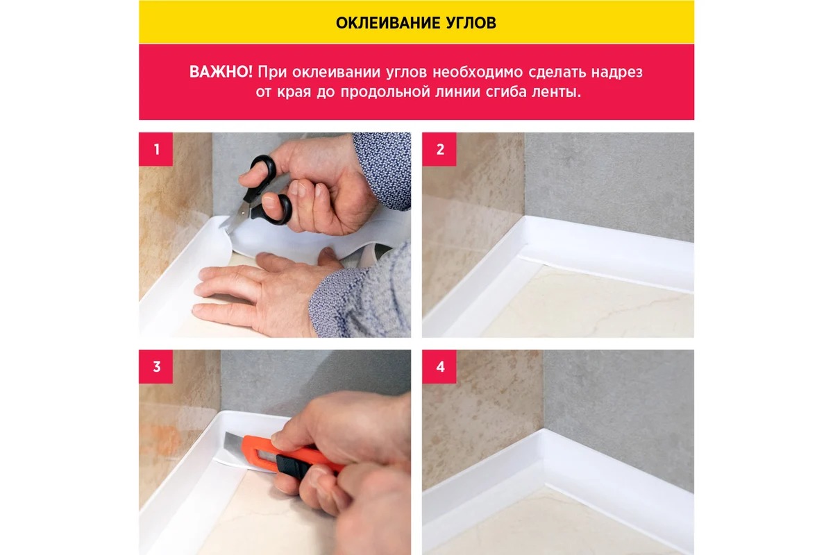 Монтаж ленты можно провести самостоятельно без специальных инструментов. Подробная инструкция представлена в одном из слайдов в карточке товара. Крайне важно соблюдать все рекомендации по нанесению бордюрной ленты.