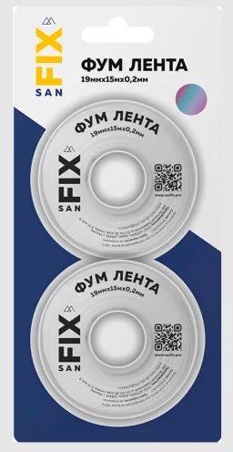 Лента ФУМ 19x0,2x15000x0,3 г./см3, 76/25 мм в упаковке блистер по 2 шт. SanFix (41219)