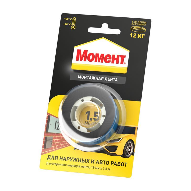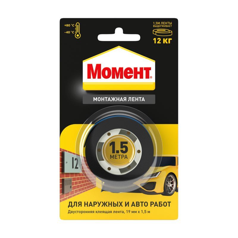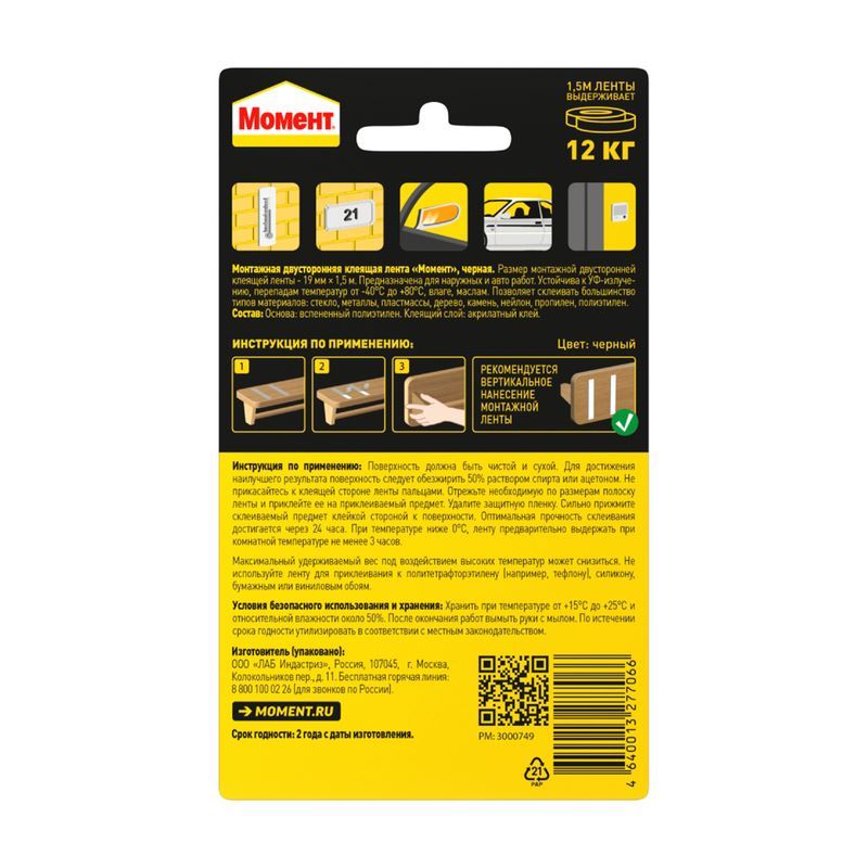 Лента клеящая монтажная двусторонняя Момент 1,5 м. (черная) (3002143)
