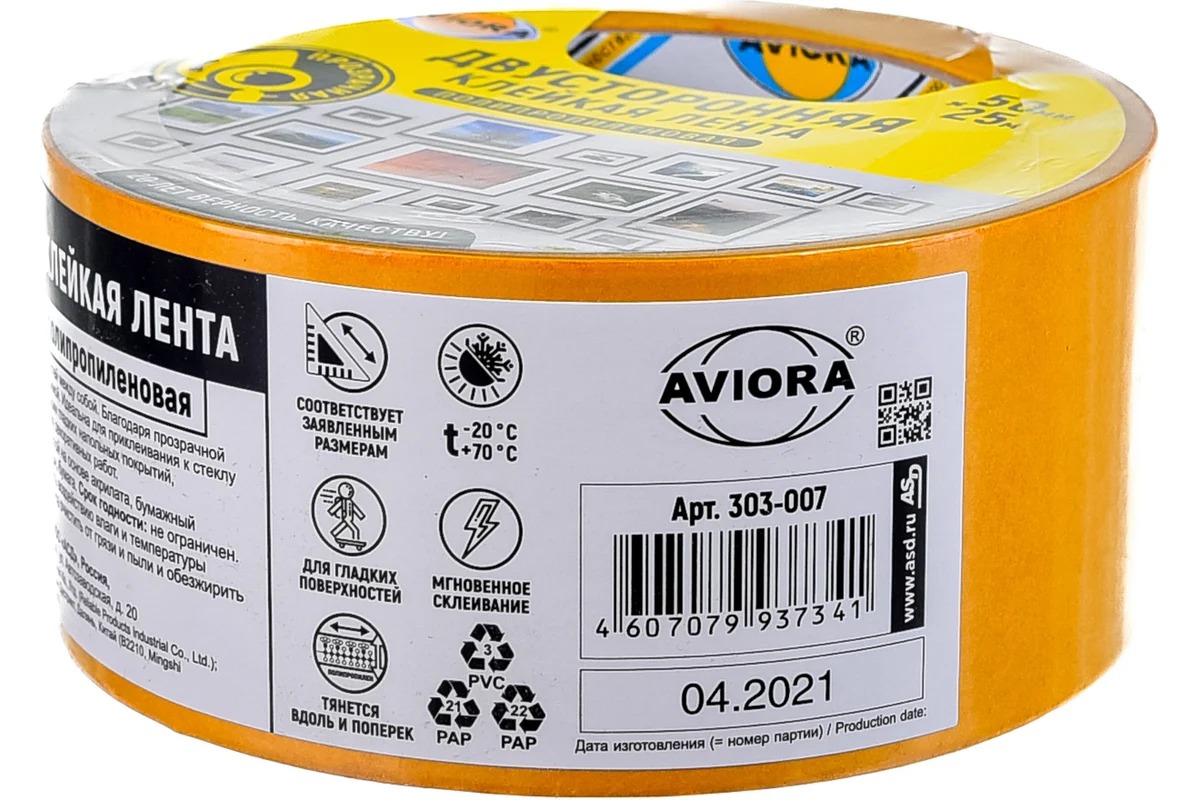 Двусторонняя прозрачная клейкая лента на ПП основе AVIORA 50 мм, 25 м 303-007 изготовлена на прозрачной основе из полипропилена. Служит для надежной фиксации напольных покрытий с гладким основанием. Подходит для использования во влажных помещениях. Диапазон рабочих температур: -20...+70 °С.