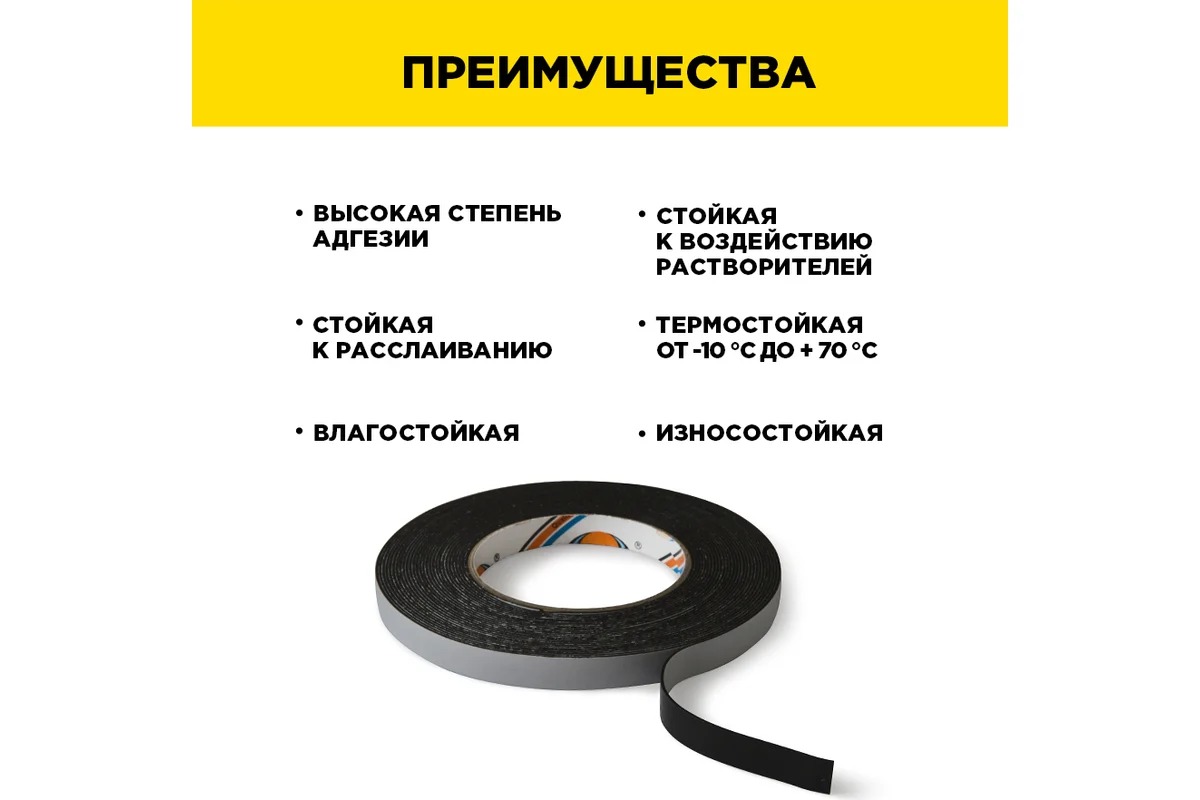 Ассортимент монтажных лент Авиора на вспененной основе включает ширины от 9 мм до 25 мм, намотки - от 2 м до 10 м. Цвет: белый и черный.