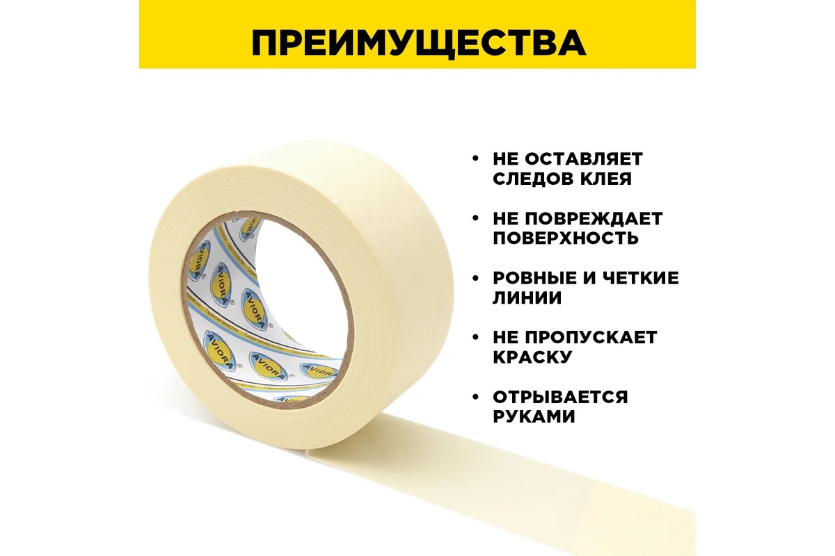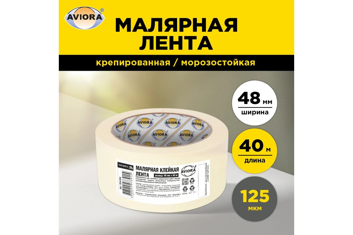 Крепированная малярная клейкая лента AVIORA предназначена для разграничения зон окрашивания при проведении малярных работ.