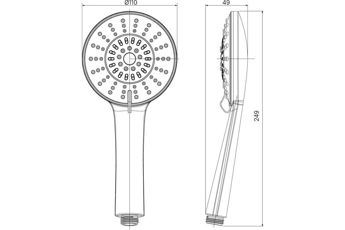 Ручная лейка для душа, ABS-пластик, никель-хромовое покрытие, серое лицо, 5 режимов, ф105 мм, силиконовые форсунки, поворотный переключатель. Упаковка: картонная коробка с окном.