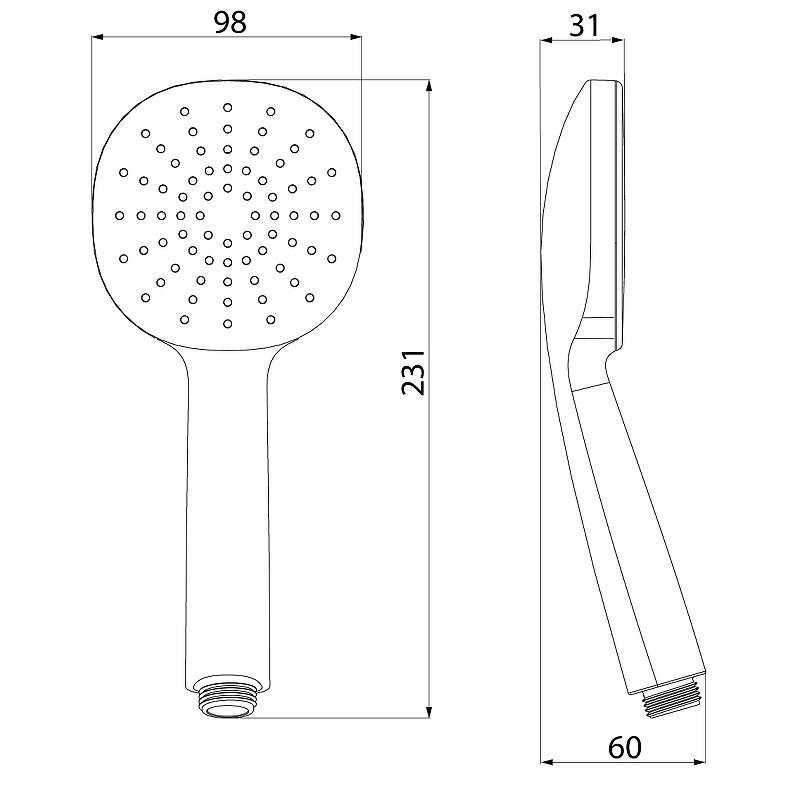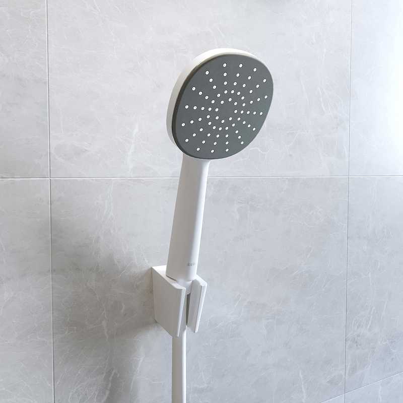 Ручная лейка, 1 режим, диаметр 98 мм. Материал: АБС - пластик, белый матовый, форсунки из TPR утоплены в корпус (вровень с поверхностью). Стиль современный. Упаковка - цветная коробка.