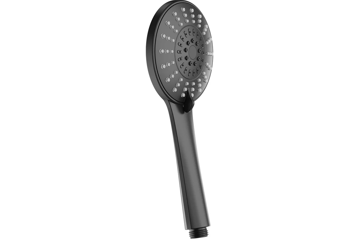 Ручная лейка для душа, ABS-пластик, 5 режимов: Spray, Massage, Spray&Massage, Strong spray и Spray&Strong spray, диаметр 110 мм, поворотный переключатель, цвет - черный матовый, материал форсунок ТРE.