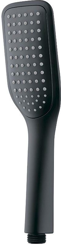 Лейка ручного душа в черном исполнении прямоугольной формы 120х60мм, 1-функциональная. Цвет корпуса - черный, цвет основания форсунок - черный, цвет форсунок - серый.