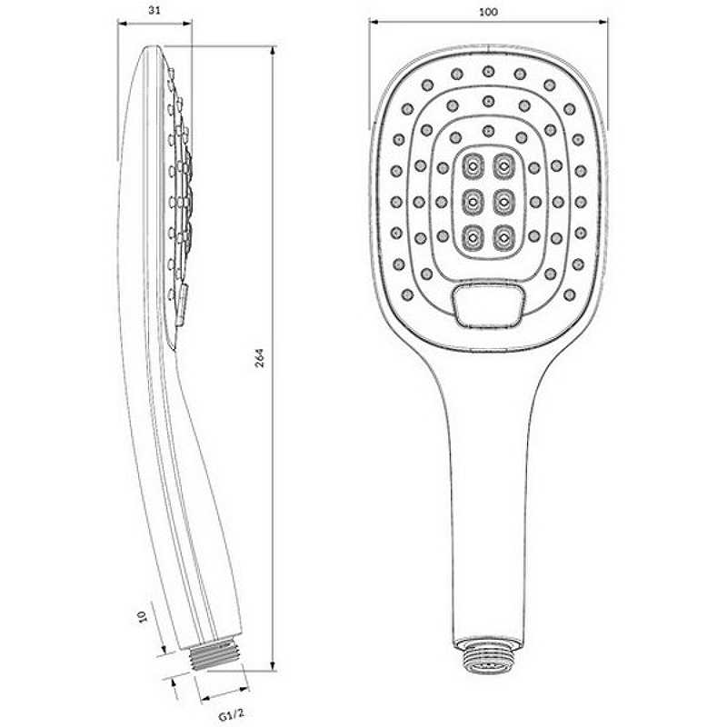 Размеры душевой лейки (ШхВхД): 10х26,4х3,1 см.