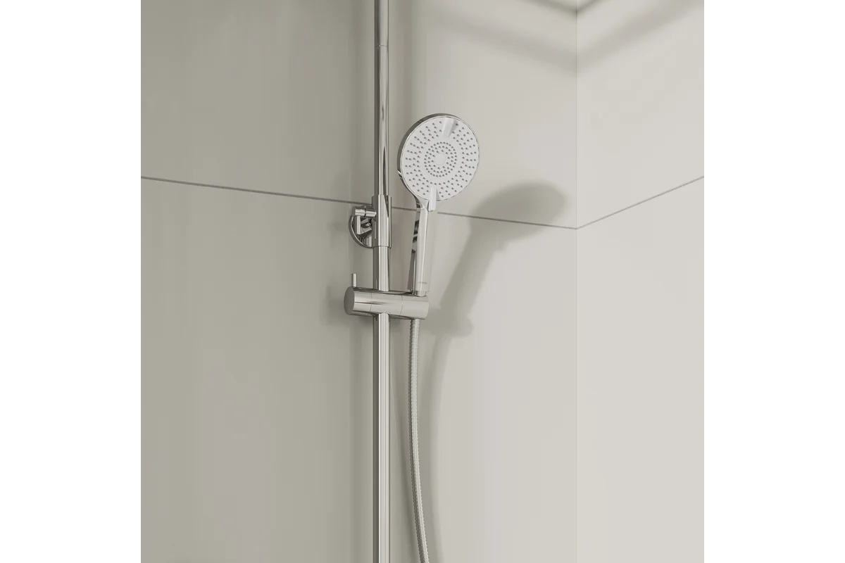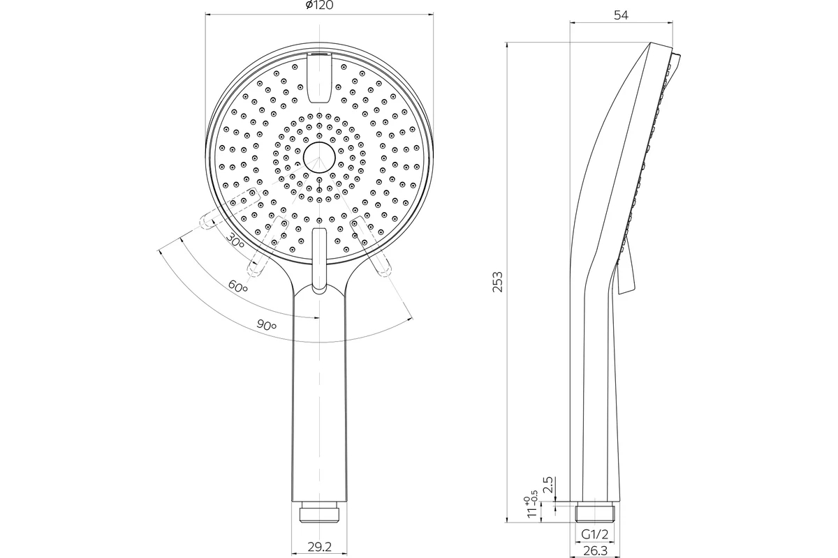 Ручная лейка для душа, ABS-пластик, 4 режима, поворотный переключатель, цвет - глянцевый хром, размер лица 120 мм, форсунки с легкой очисткой, материал TPE (мягкая резина).