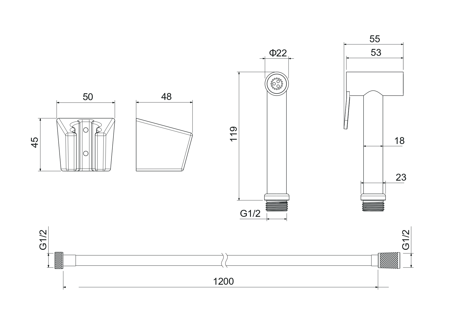 Лейка гигиеническая со шлангом Aquatek 120 см и держателем, золото (AQ2054BG)