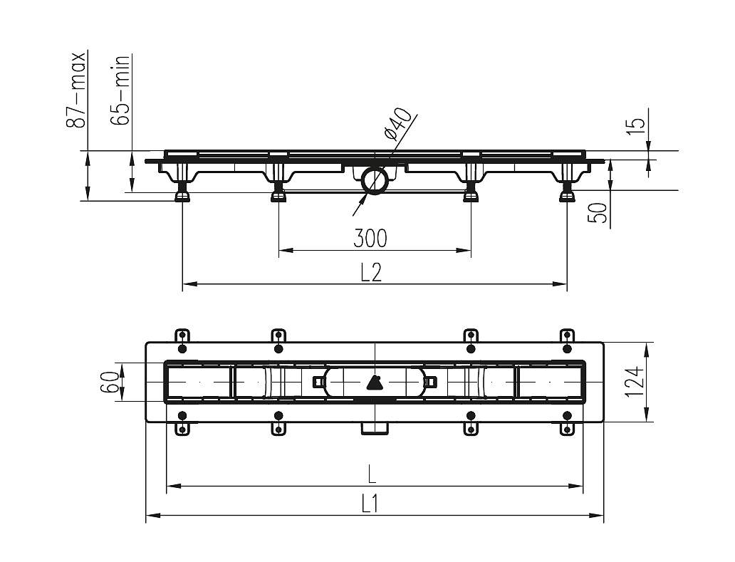 Нижняя часть изготовлена из полипропилена, решетка - из нержавеющей стали DIN 1.4301, с возможностью нагрузки K3 (до 300 кг). Рамка - пластик.