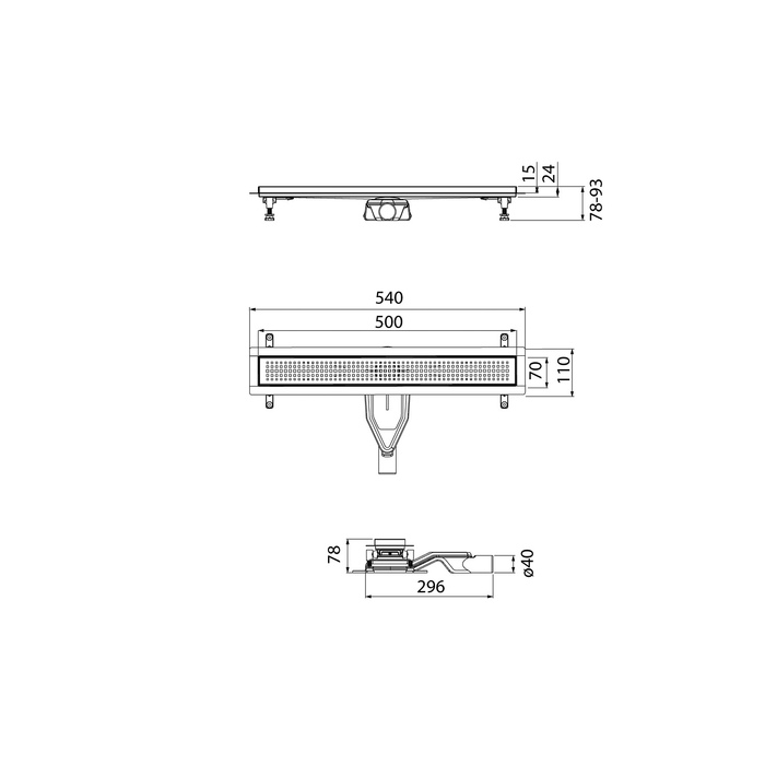 Лоток душевой, сифон 360, комбинированный затвор, перфорированная решетка, 500мм, хром. Корпус и решетки выполнены из нержавеющей стали 304.