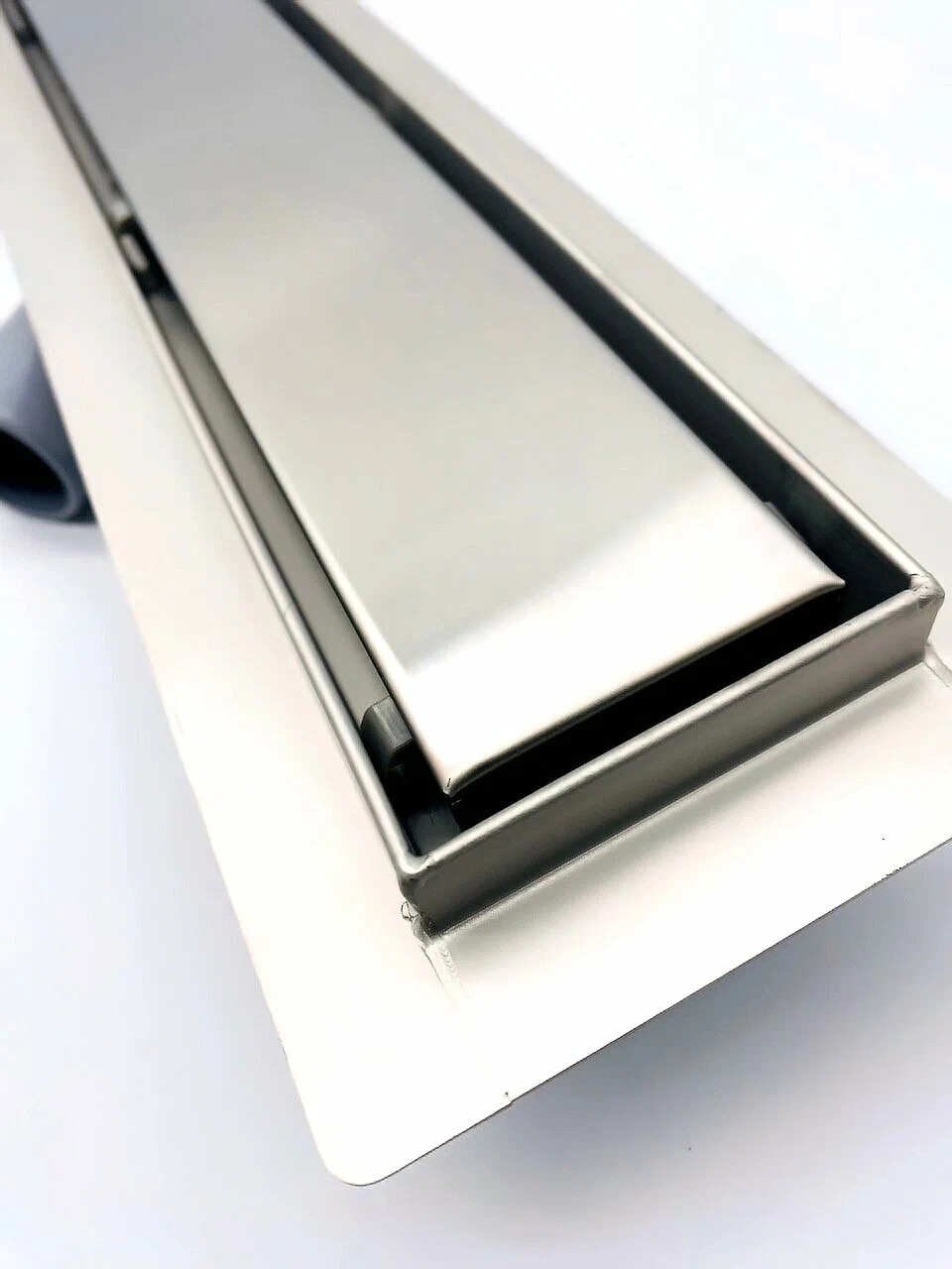 Нержавеющая стальная решетка, включенная в комплект, улучшает внешний вид и повышает функциональность лотка. Она предотвращает попадание крупных предметов в канализацию и легко снимается при помощи специального ключа, который также идет в комплекте.