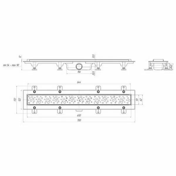 Имеет вытянутую прямоугольную форму, его также называют дренажным каналом или душевым лотком. Сверху конструкция трапа закрывается декоративной решеткой из нержавеющей стали.