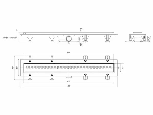 Линейный трап лоток для душа с комбинированным затвором – классическое техническое решение для отвода воды из ванной комнаты. Имеет вытянутую прямоугольную форму, его также называют дренажным каналом или душевым лотком. Сверху конструкция трапа закрывается черной декоративной решеткой из нержавеющей стали. Трап с комбинированным затвором - идеальное решение как при регулярном, так и при нерегулярном водоотведении. Трап устанавливается в пол, общую высоту монтажа можно регулировать от 66 до 102 мм. Трап изготовлен из прочного АБС-пластика, устойчивого к высоким температурам, ударным нагрузкам и воздействию влаги. Отличается надежностью конструкции и продолжительным сроком эксплуатации. Устанавливается по краям или в углах душевой комнаты и фиксируется с помощью крепежных элементов. Внутри корпуса установлен съемный сифон (гидрозатвор) и съемный клапан сухого затвора. Слив горизонтальный, диаметр выпуска 40 мм. Пропускная способность — 35 л/мин. Сверху трап закрывает прямоугольная гладкая черная решетка (нержавеющая сталь с порошковой покраской), которая задерживает мусор, препятствуя забиванию слива, а также выполняет декоративную функцию. На решетку можно становиться, принимая душ: изделие выдерживает нагрузку до 300 кг.