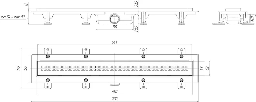 Линейный трап лоток для душа с комбинированным затвором – классическое техническое решение для отвода воды из ванной комнаты. Имеет вытянутую прямоугольную форму, его также называют дренажным каналом или душевым лотком. Сверху конструкция трапа закрывается декоративной решеткой из нержавеющей стали. Трап с комбинированным затвором - идеальное решение как при регулярном, так и при нерегулярном водоотведении. Трап устанавливается в пол, общую высоту монтажа можно регулировать от 66 до 102 мм. Трап изготовлен из прочного АБС-пластика, устойчивого к высоким температурам, ударным нагрузкам и воздействию влаги. Отличается надежностью конструкции и продолжительным сроком эксплуатации. Устанавливается по краям или в углах душевой комнаты и фиксируется с помощью крепежных элементов. Внутри корпуса установлен съемный сифон (гидрозатвор) и съемный клапан сухого затвора. Слив горизонтальный, диаметр выпуска 40 мм. Пропускная способность — 35 л/мин. Сверху трап закрывает прямоугольная гладкая глянцевая решетка (нержавеющая сталь), которая задерживает мусор, препятствуя забиванию слива, а также выполняет декоративную функцию. На решетку можно становиться, принимая душ: изделие выдерживает нагрузку до 300 кг.