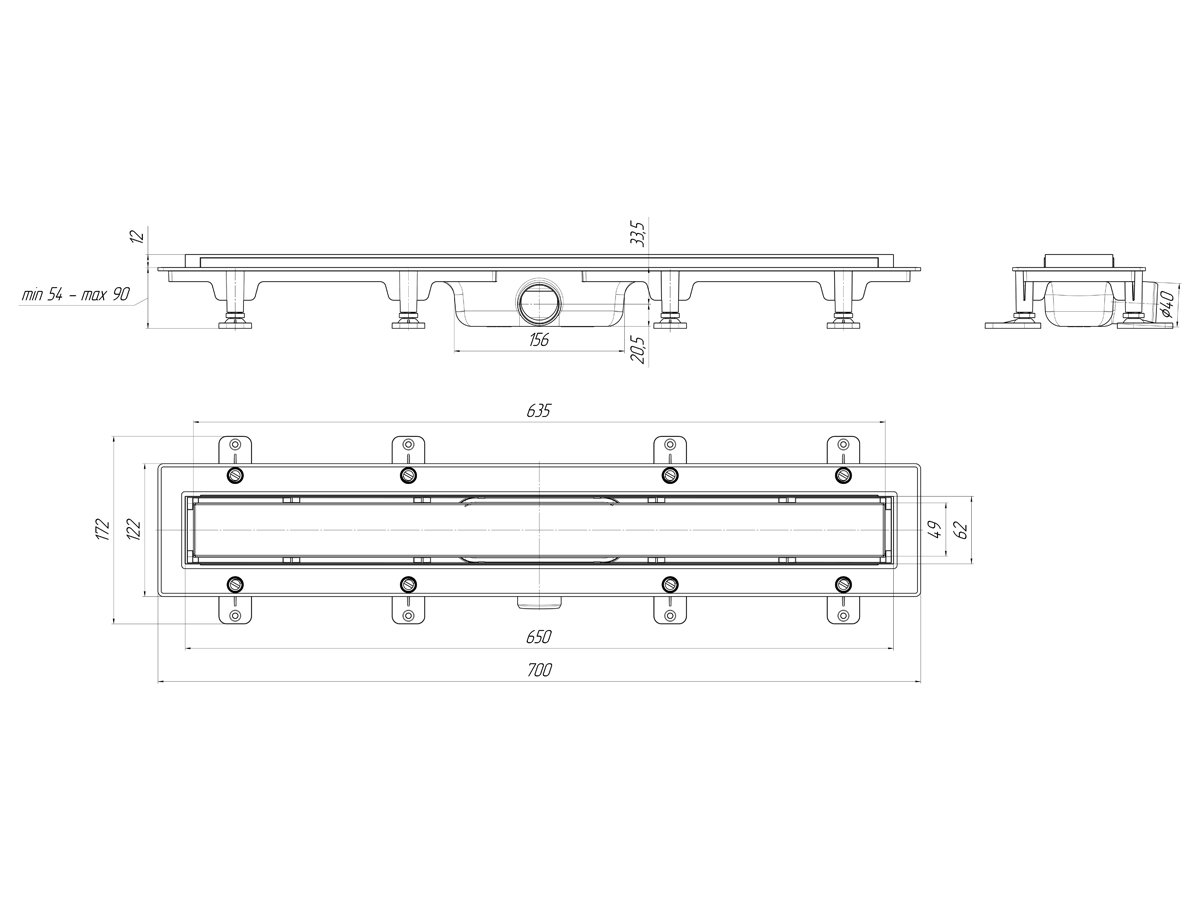 Трап устанавливается в пол, общую высоту монтажа можно регулировать от 66 до 102 мм.