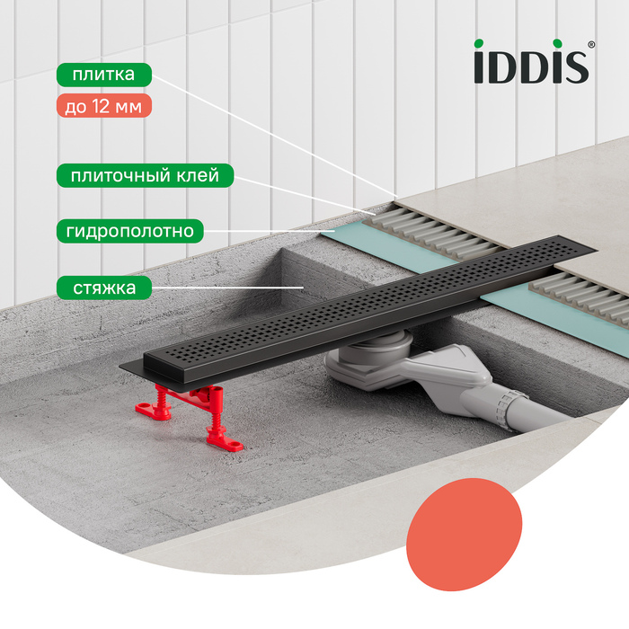Лоток душевой 800 мм сифон 360 комбинированный затвор перфорированная решетка черный Iddis (975B8BL20DZ)