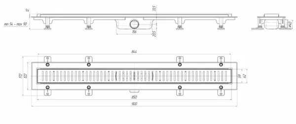 Комплектация: трап линейный - 1 комплект, лента гидроизоляционная - 2 шт, комплект для монтажа трапа, паспорт с инструкцией по монтажу, короб для транспортировки