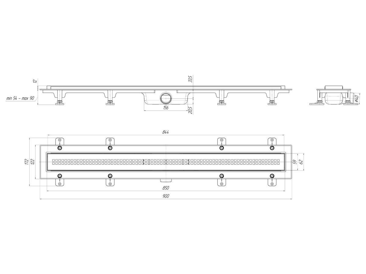 Линейный трап лоток для душа с комбинированным затвором – классическое техническое решение для отвода воды из ванной комнаты. Имеет вытянутую прямоугольную форму, его также называют дренажным каналом или душевым лотком. Сверху конструкция трапа закрывается черной декоративной решеткой из нержавеющей стали. Трап с комбинированным затвором - идеальное решение как при регулярном, так и при нерегулярном водоотведении. Трап устанавливается в пол, общую высоту монтажа можно регулировать от 66 до 102 мм. Трап изготовлен из прочного АБС-пластика, устойчивого к высоким температурам, ударным нагрузкам и воздействию влаги. Отличается надежностью конструкции и продолжительным сроком эксплуатации. Устанавливается по краям или в углах душевой комнаты и фиксируется с помощью крепежных элементов. Внутри корпуса установлен съемный сифон (гидрозатвор) и съемный клапан сухого затвора. Слив горизонтальный, диаметр выпуска 40 мм. Пропускная способность — 35 л/мин. Сверху трап закрывает прямоугольная гладкая черная решетка (нержавеющая сталь с порошковой покраской), которая задерживает мусор, препятствуя забиванию слива, а также выполняет декоративную функцию. На решетку можно становиться, принимая душ: изделие выдерживает нагрузку до 300 кг.