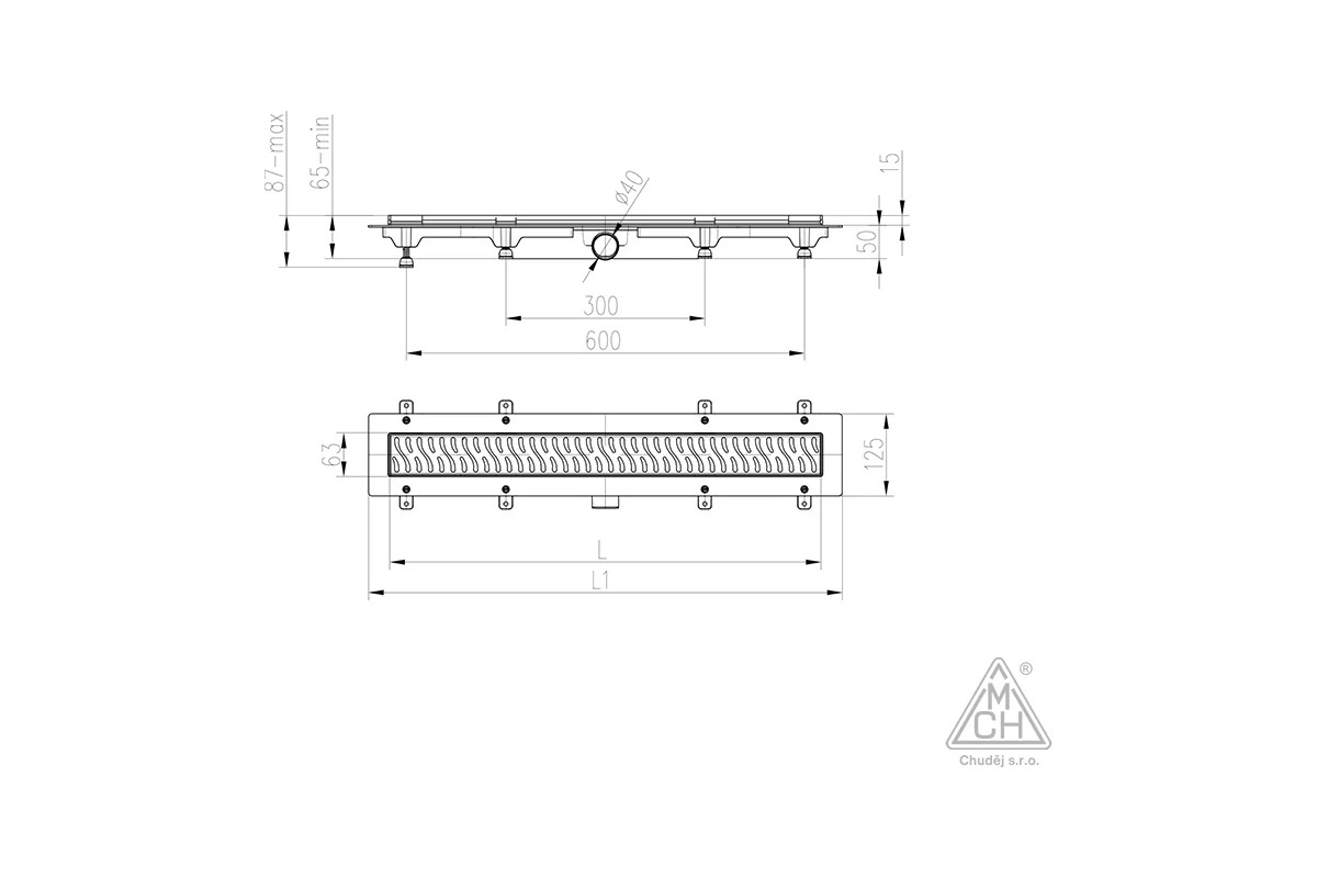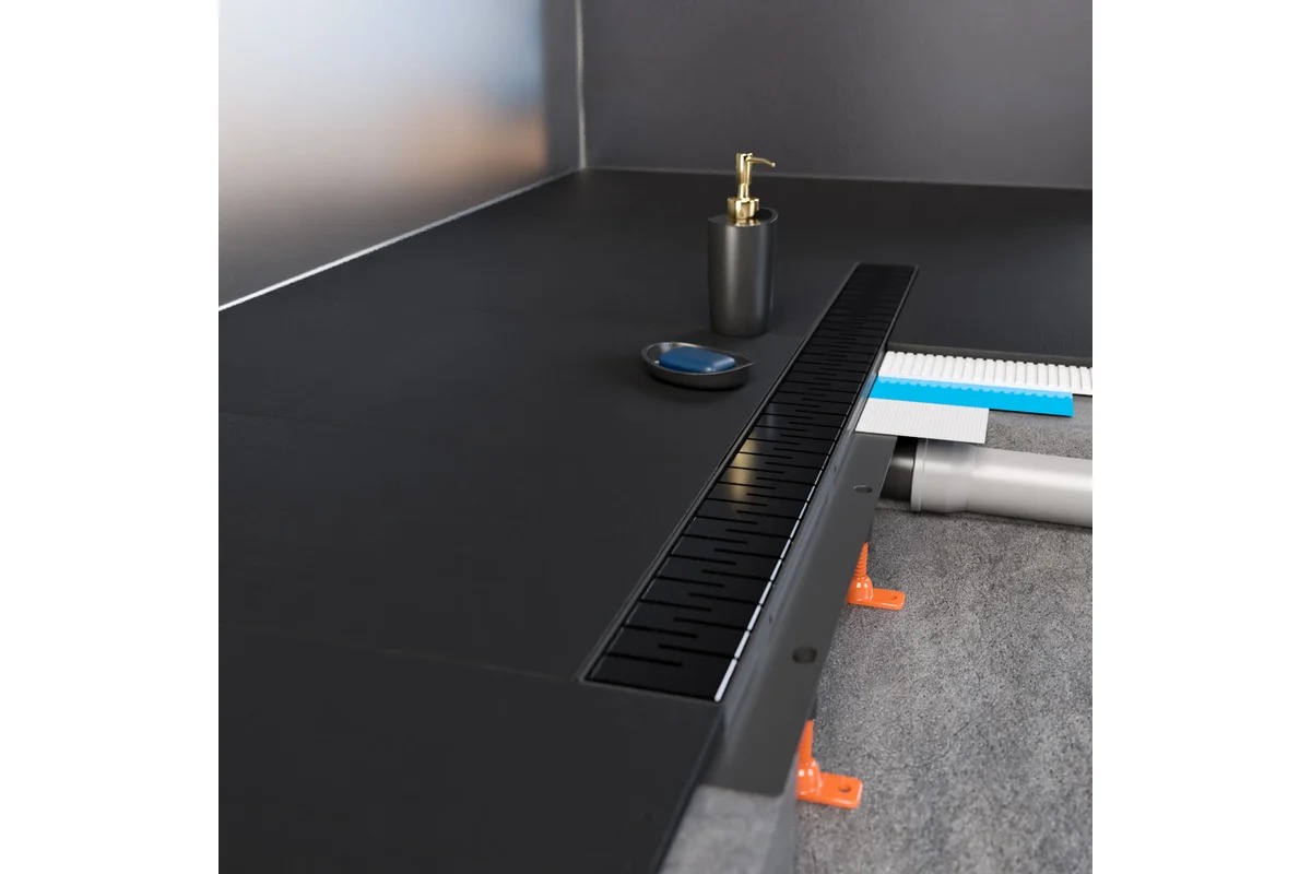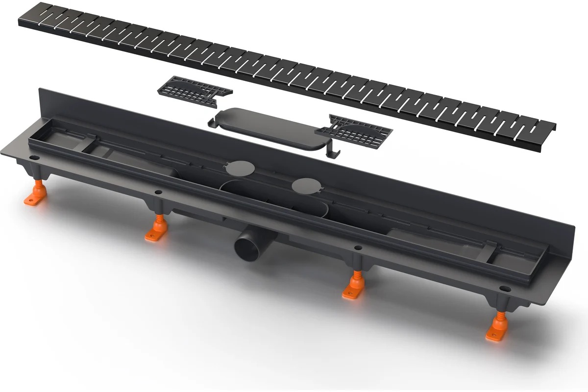 Лоток душевой 950 мм. MCH Chudej Medium Black Edition (решетка нерж. сталь черная, боковой слив D 40) CH950MC