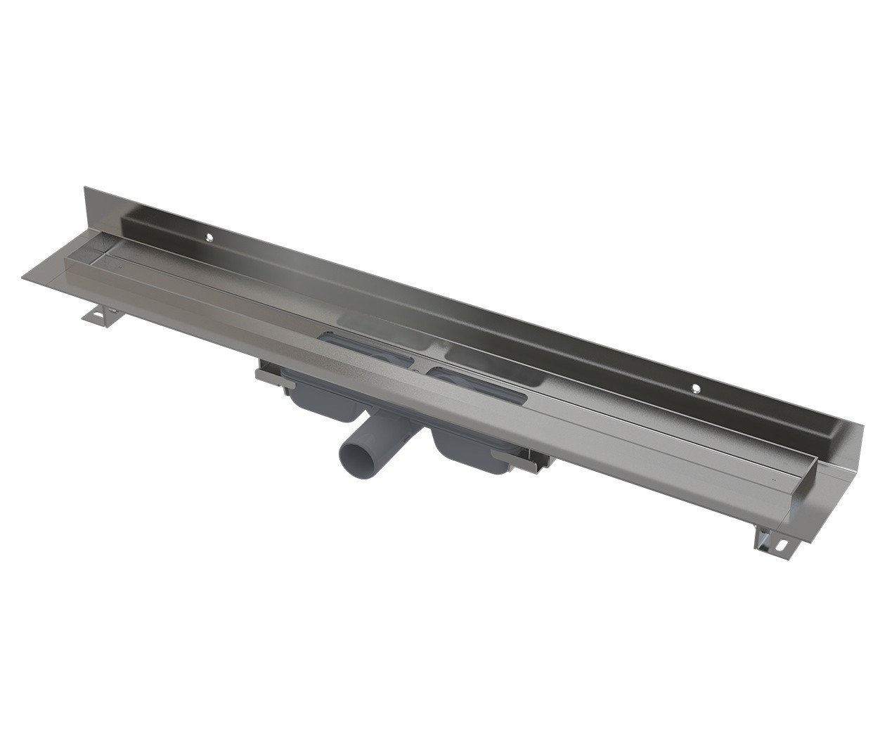 AlcaPlast Wall Low APZ116-750 Душевой трап 750 мм - для цельной решётки и для основы под кладку плитки. Для использования внутри помещений. Для водоотведения в душевых на уровне пола. Предназначен для монтажа непосредственно к стене. Для цельных решеток
