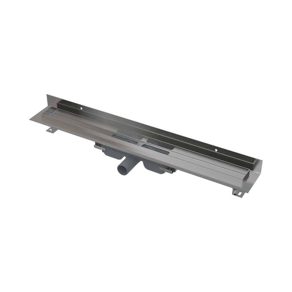 AlcaPlast Wall Low APZ116-950 Душевой трап 950 мм - для цельной решётки и для основы под кладку плитки. Для использования внутри помещений. Для водоотведения в душевых на уровне пола. Предназначен для монтажа непосредственно к стене. Для цельных решеток