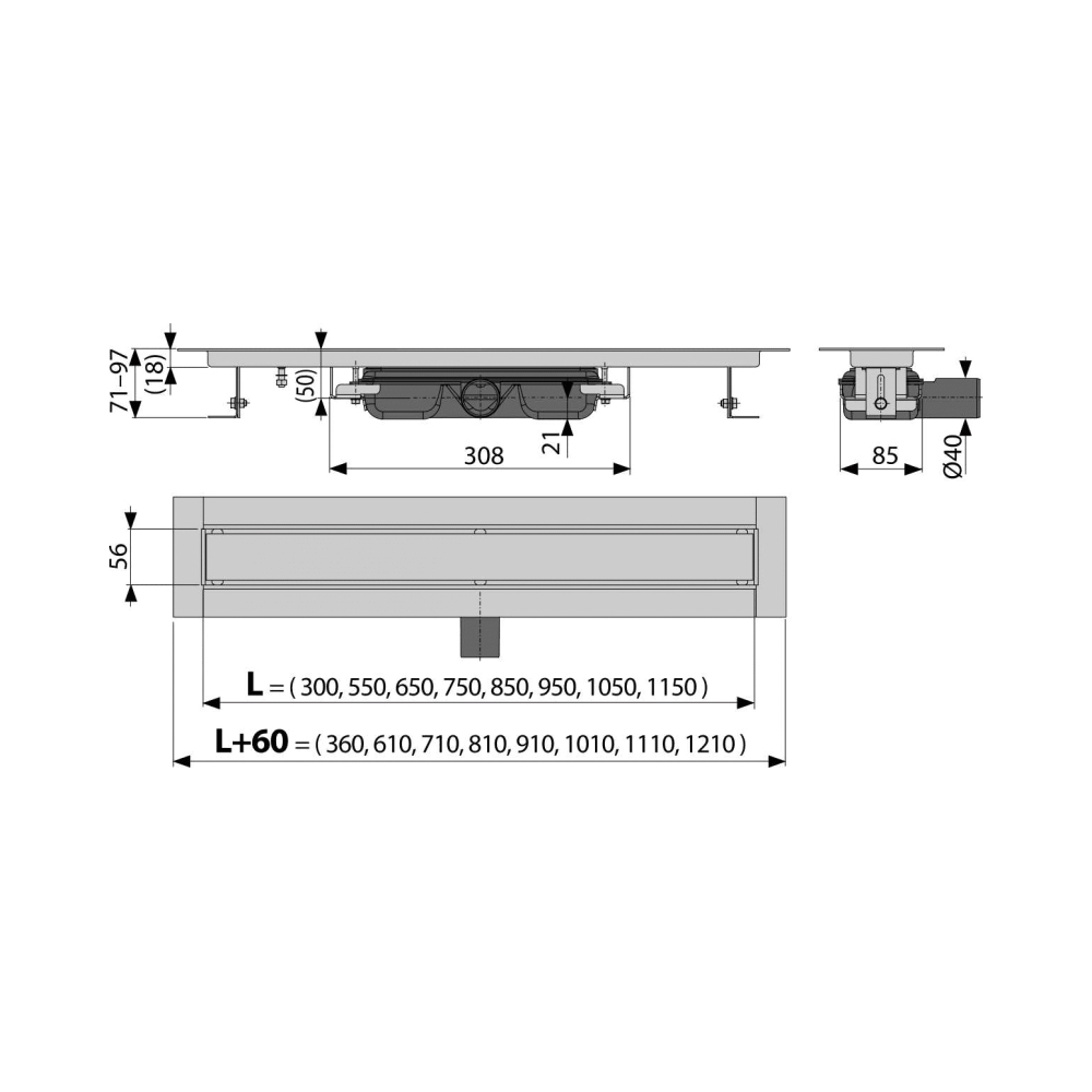 Лоток душевой AlcaPlast без порогов с решеткой под кладку плитки Alcadrain (APZ115-850 LOW)