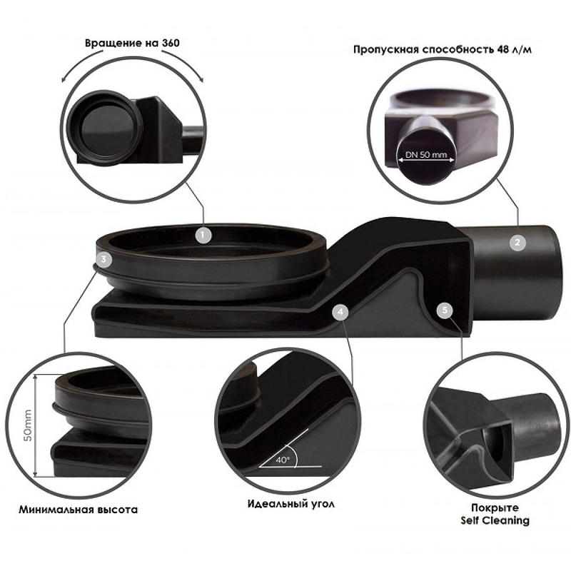 - S-образный сифон, разработанный с высокой степенью функциональности, предотвращает проникновение запахов из канализации