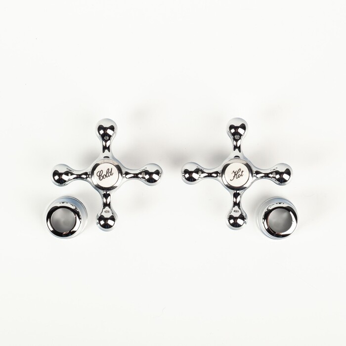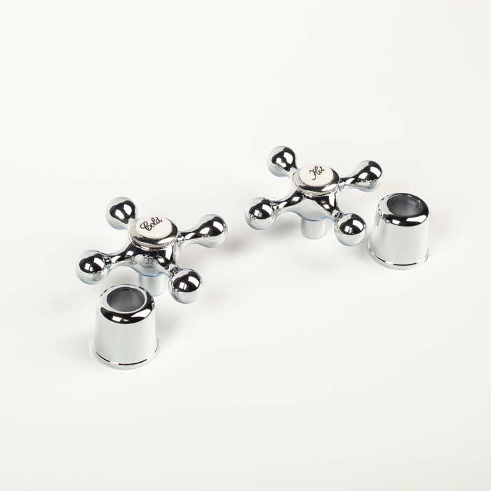 Комплект маховиков для двухзахватного смесителя, крест, размер штока кран-буксы 8х24, 2 шт, хром