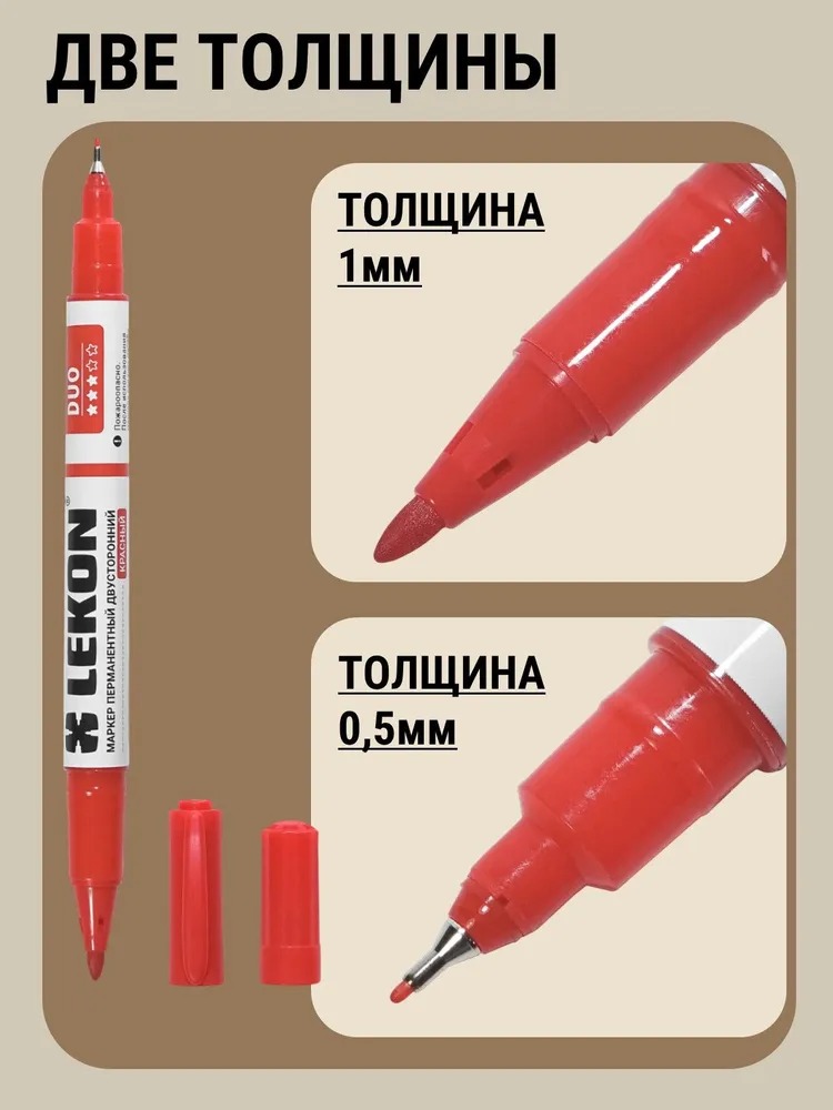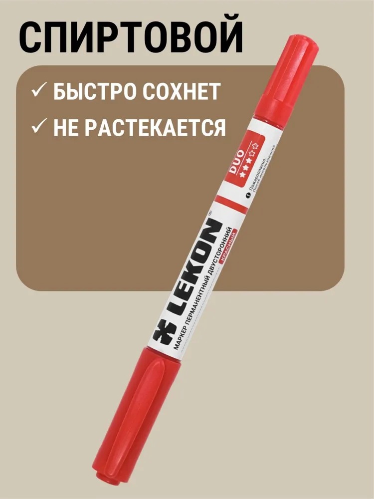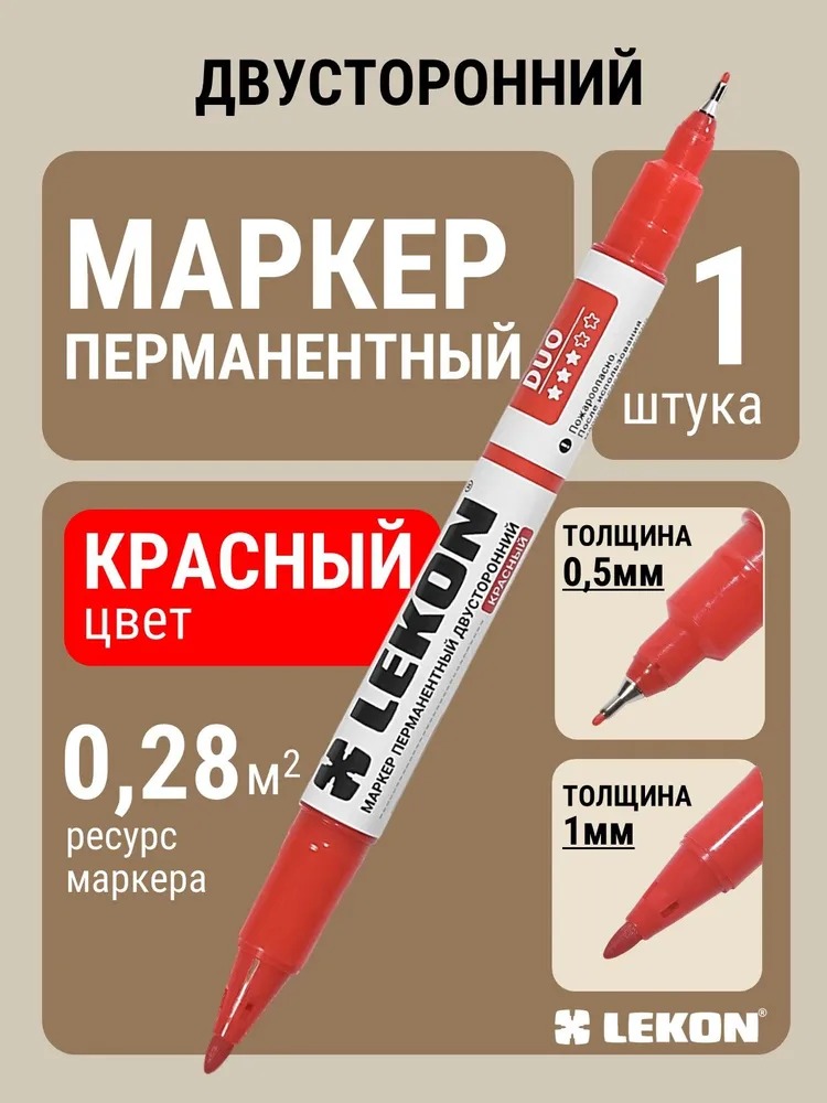 Маркер перманентный двухсторонний Lekon Duo (красный) (012761)