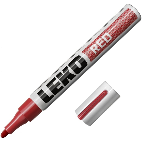 Красный строительный маркер-краска LEKON служит для разметки отделочных материалов, маркировки товаров в торговом зале, маскировки дефектов мебели и бытовой техники. Красящий состав быстро высыхает на поверхности и отличается устойчивостью к выцветанию.